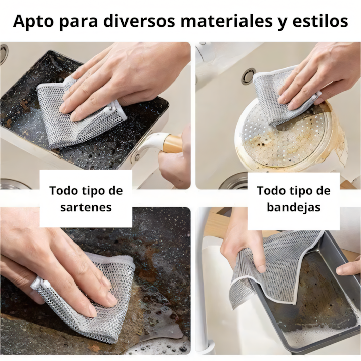 Su tecnología de mallado doble capa de alambre metálico es capaz de eliminar las manchas más difíciles sin dañar tus utensilios de cocina , una diferencia de los estropajos de toda la vida.